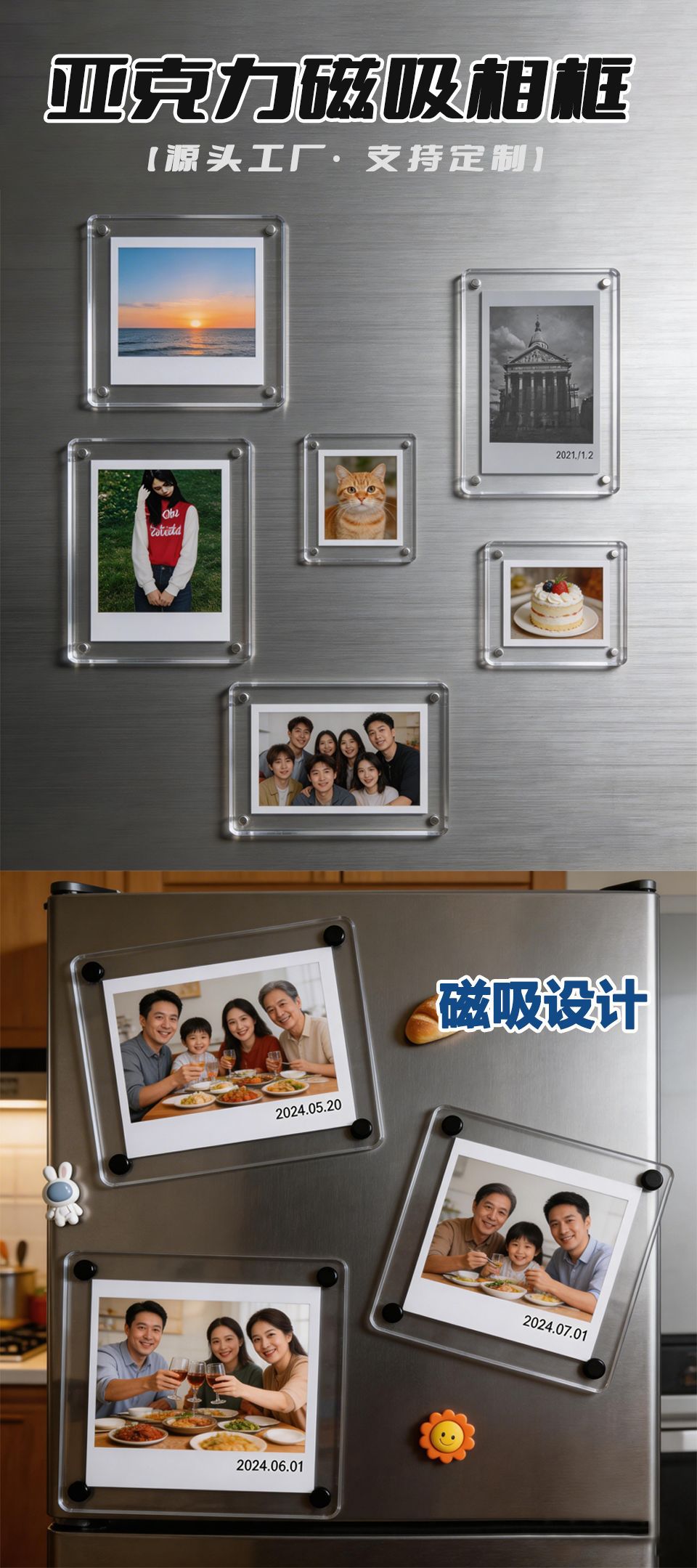 亚克力磁吸相框冰箱贴1寸强磁相框卡砖高清双面拍立得胶 片展示框