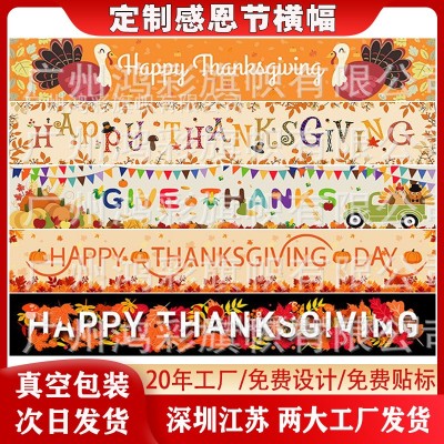 跨境新款感恩节横幅亚马逊南瓜节日长背景挂布派对气氛围装饰旗子