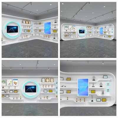 公司陈列展示柜中岛展厅文化墙体验桌烤漆展台异形展柜展示架