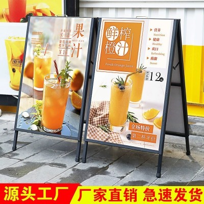 广告牌展示架斜面落地三角双面海报促销折叠架子kt板手提立式防风